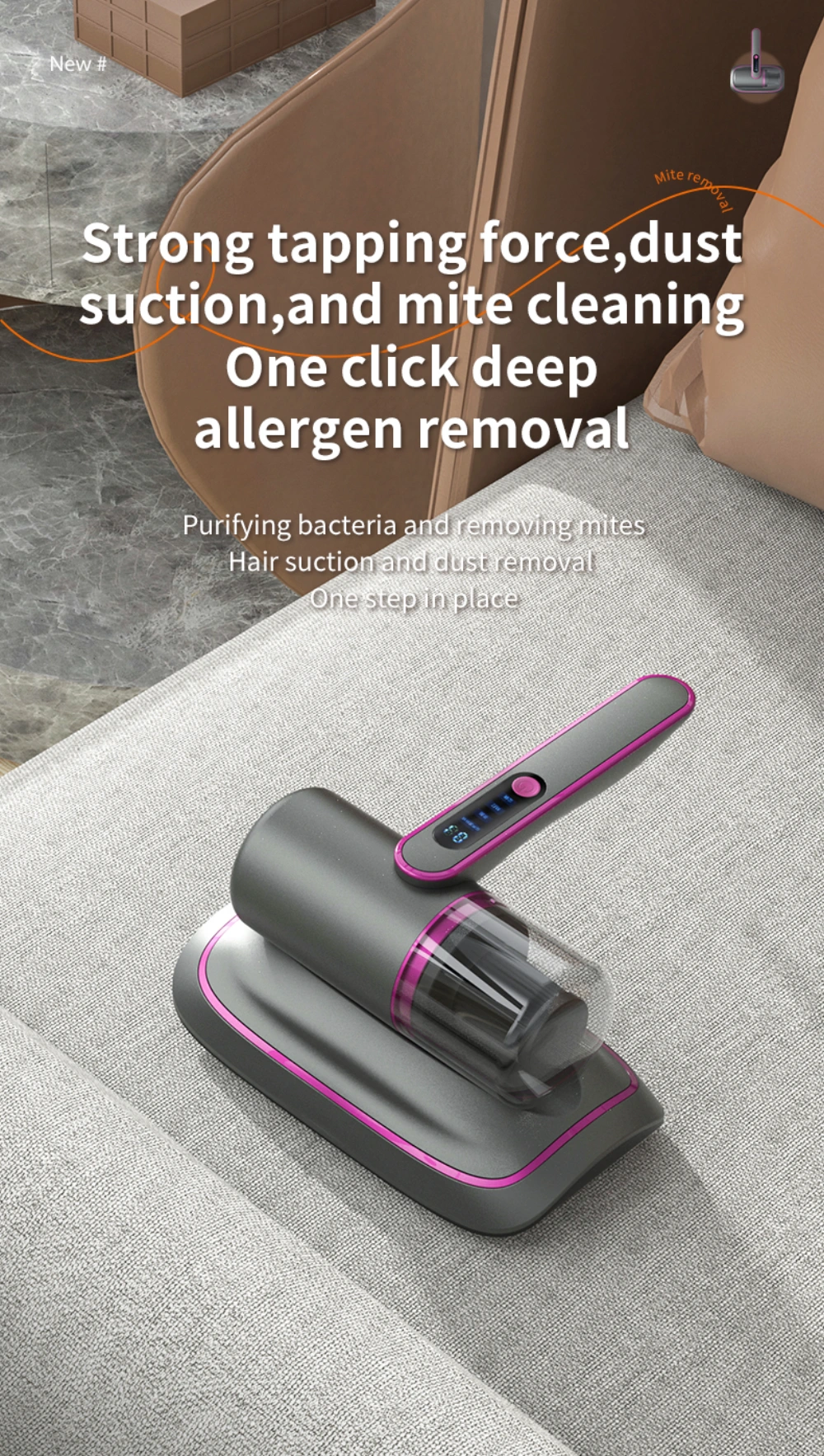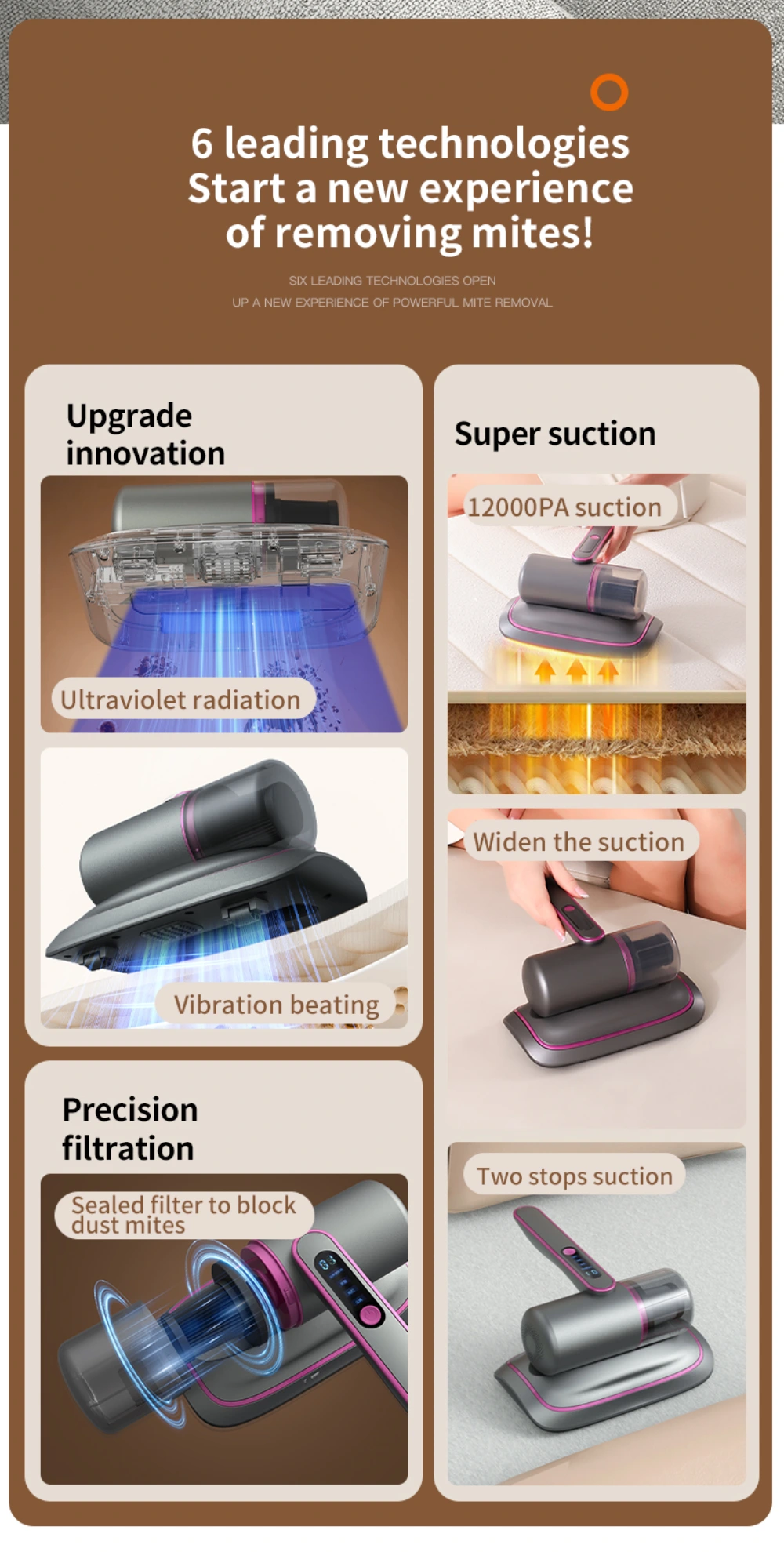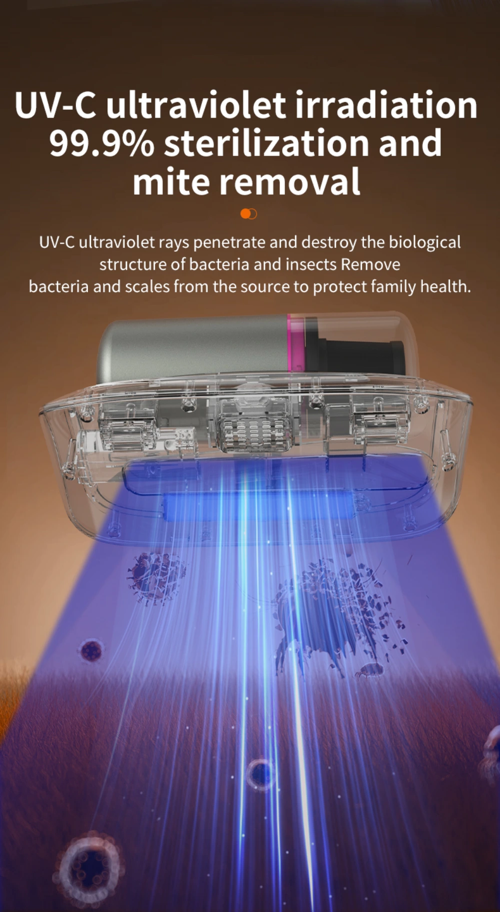 12000Pa Strong Suction Wireless Mite Remover - Household UV-C Ultraviolet Germicidal Mite Removal Vacuum Cleaner