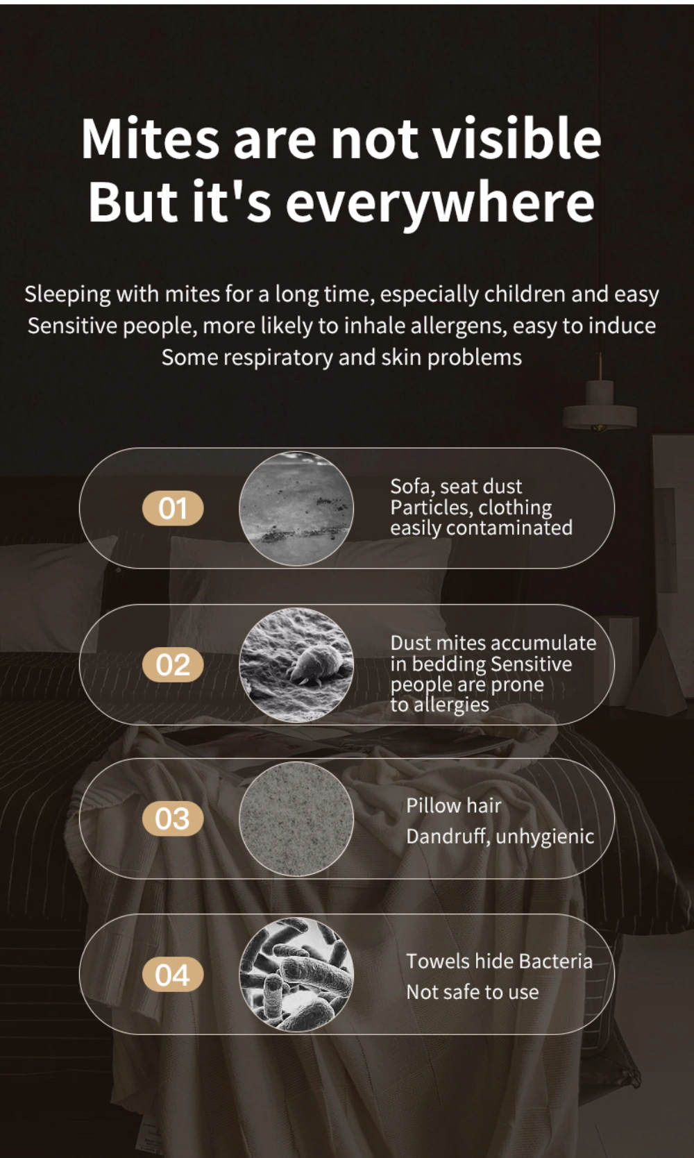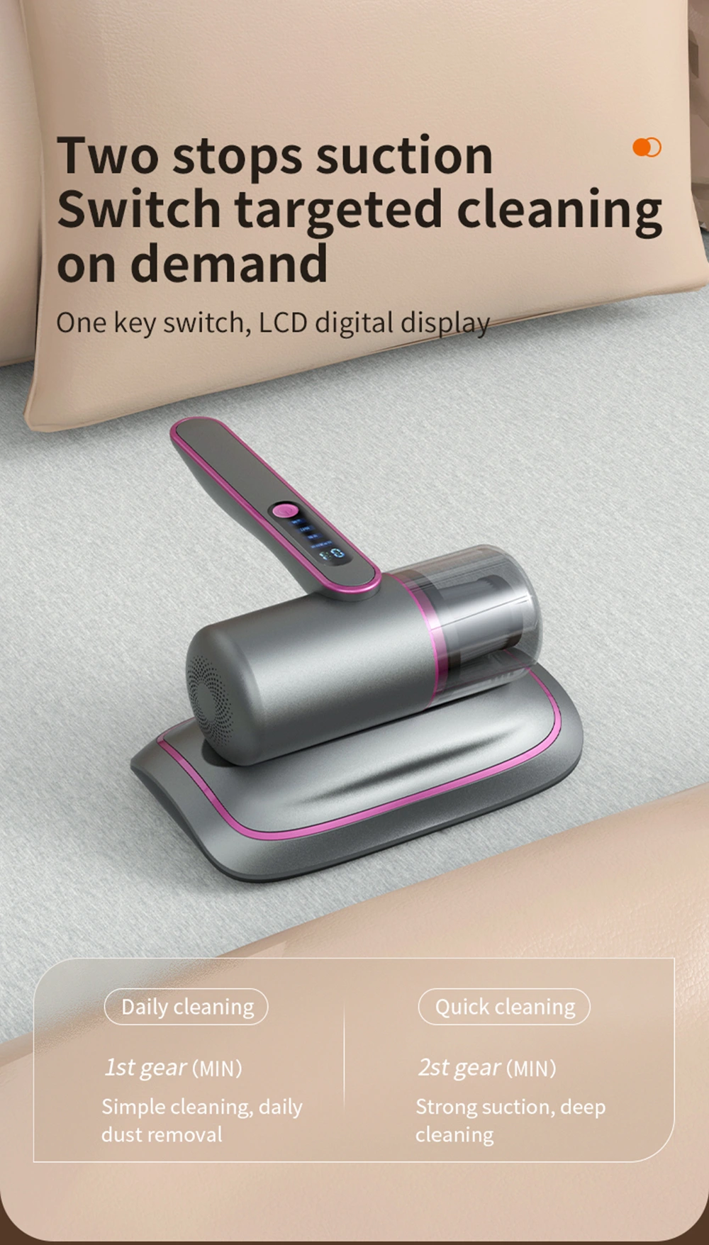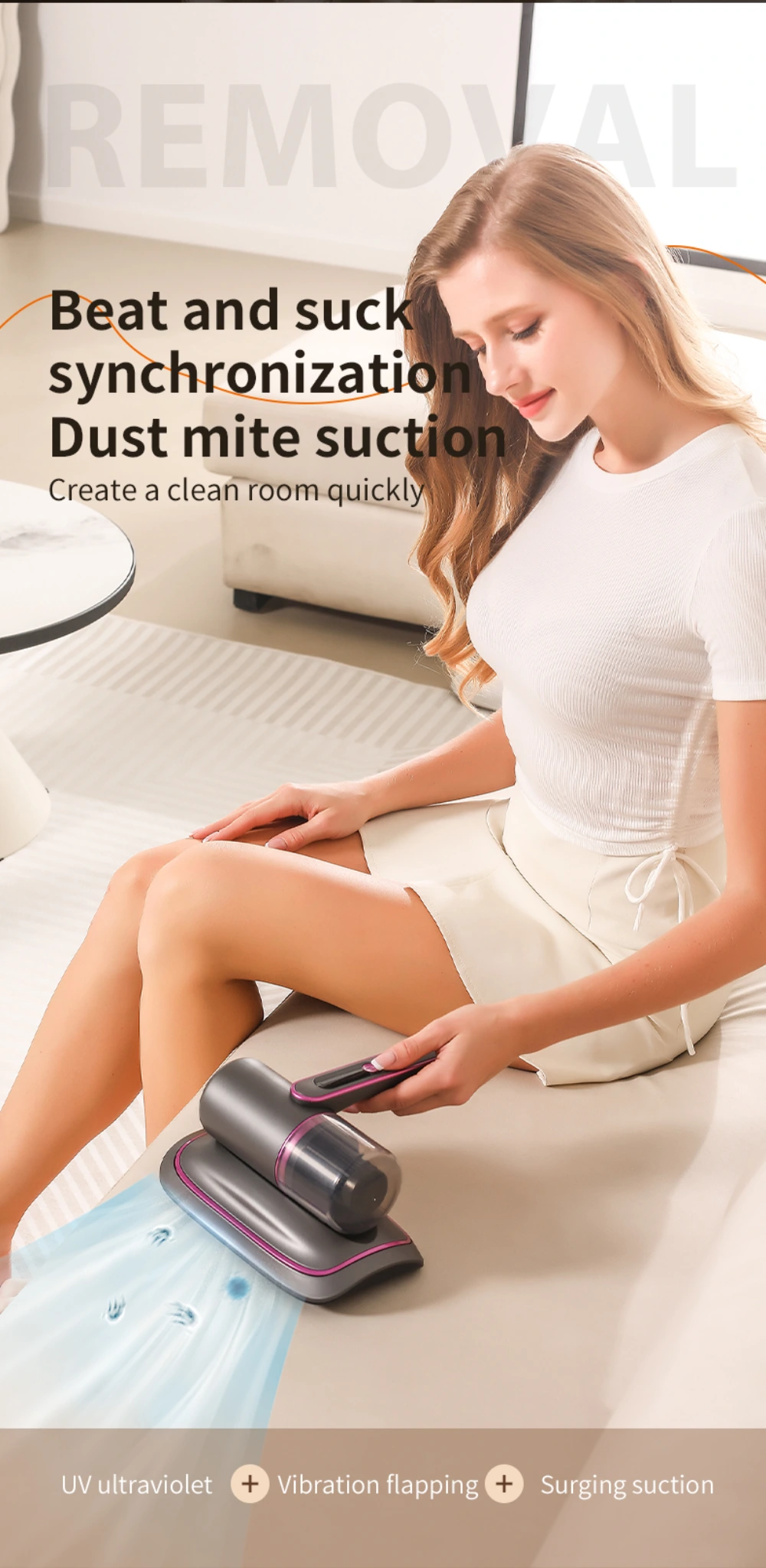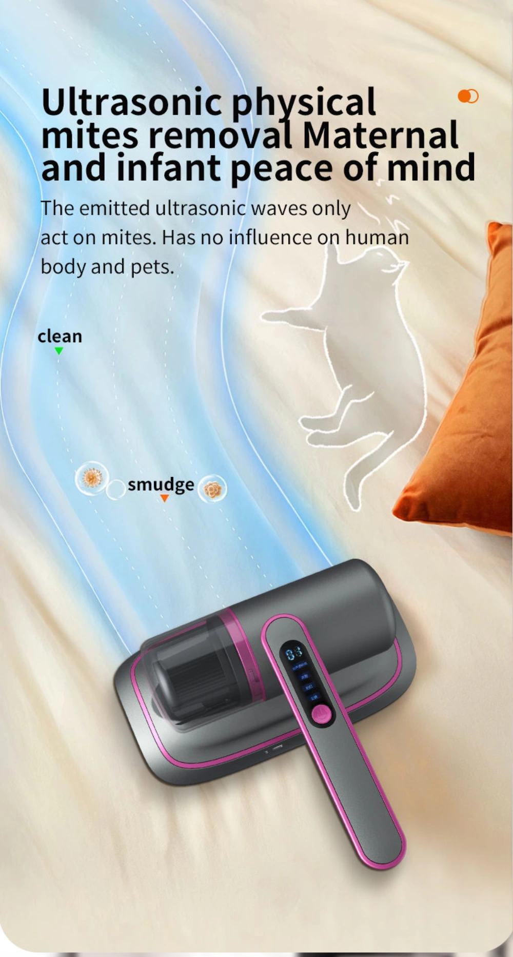 12000Pa Strong Suction Wireless Mite Remover - Household UV-C Ultraviolet Germicidal Mite Removal Vacuum Cleaner