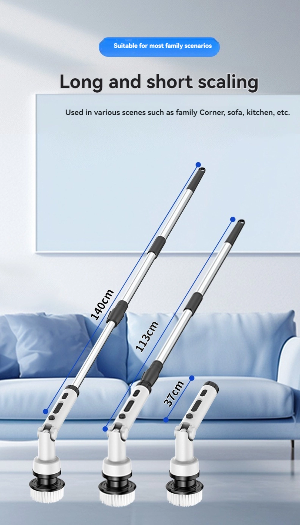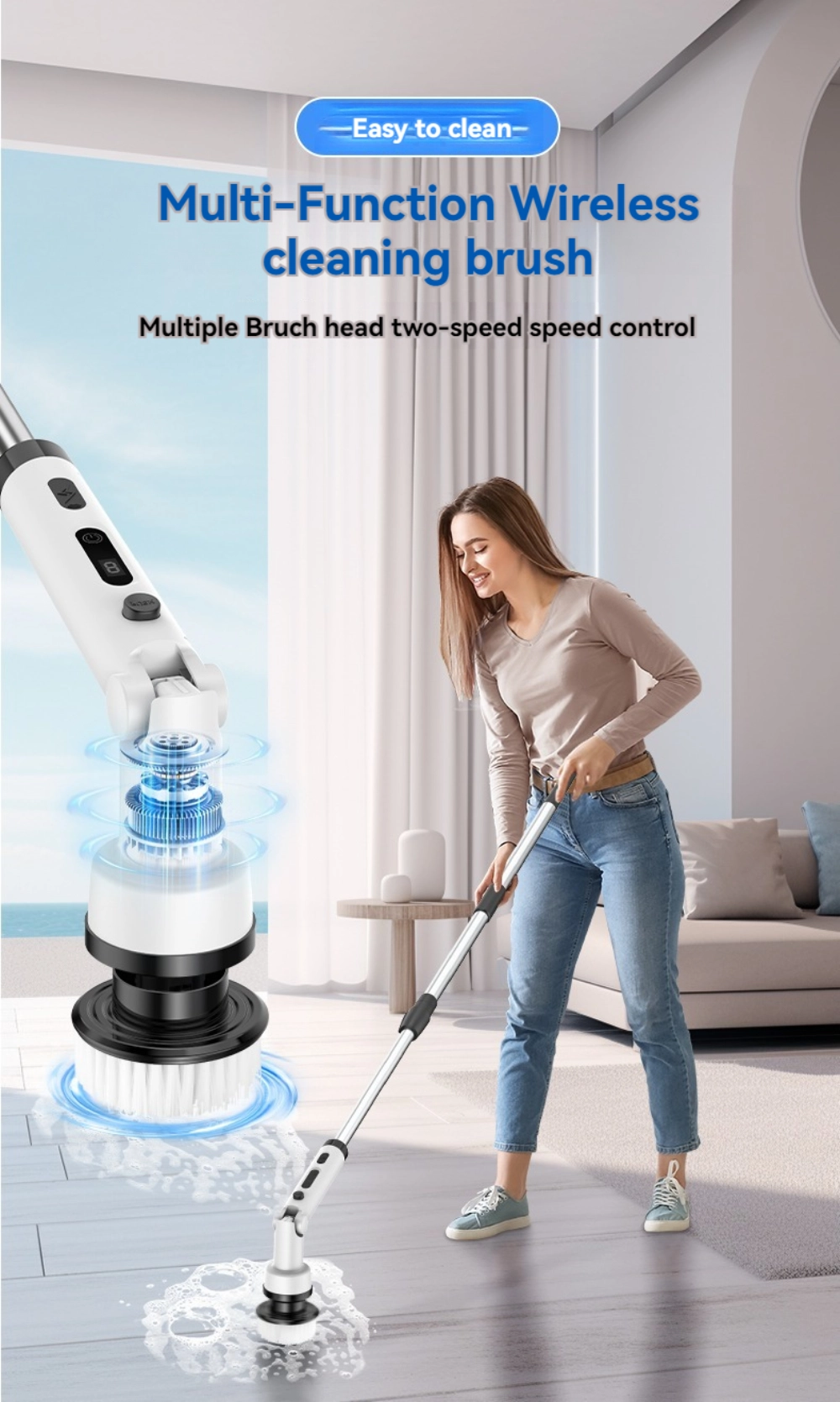 Easy Operation: Adjustable brush head and retractable handle enable cleaning hard-to-reach areas without bending over.