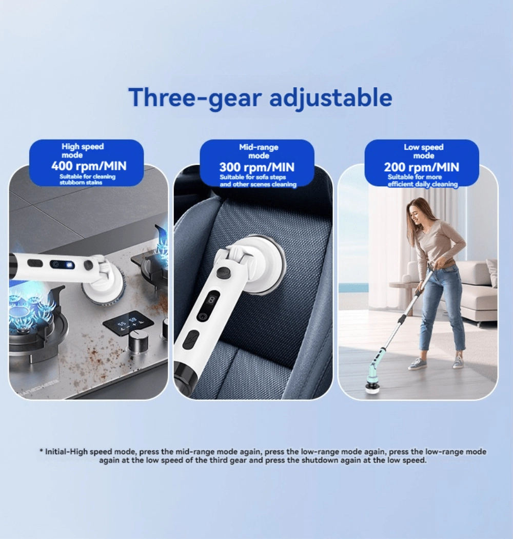 25W Powerful Motor & 2-Speed Control – 450 RPM for deep cleaning, 350 RPM for gentle tasks.