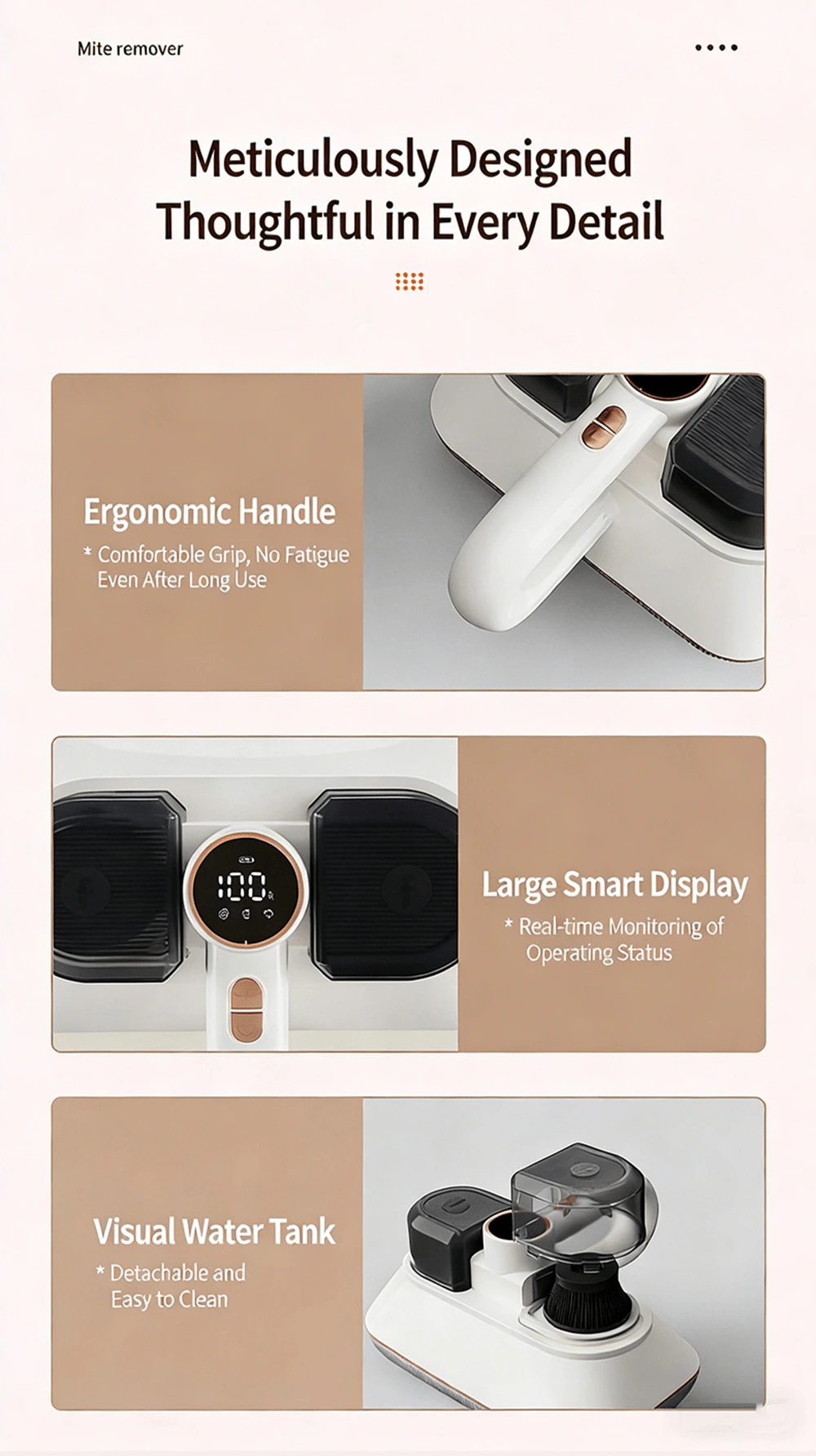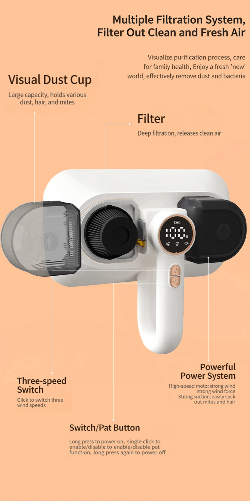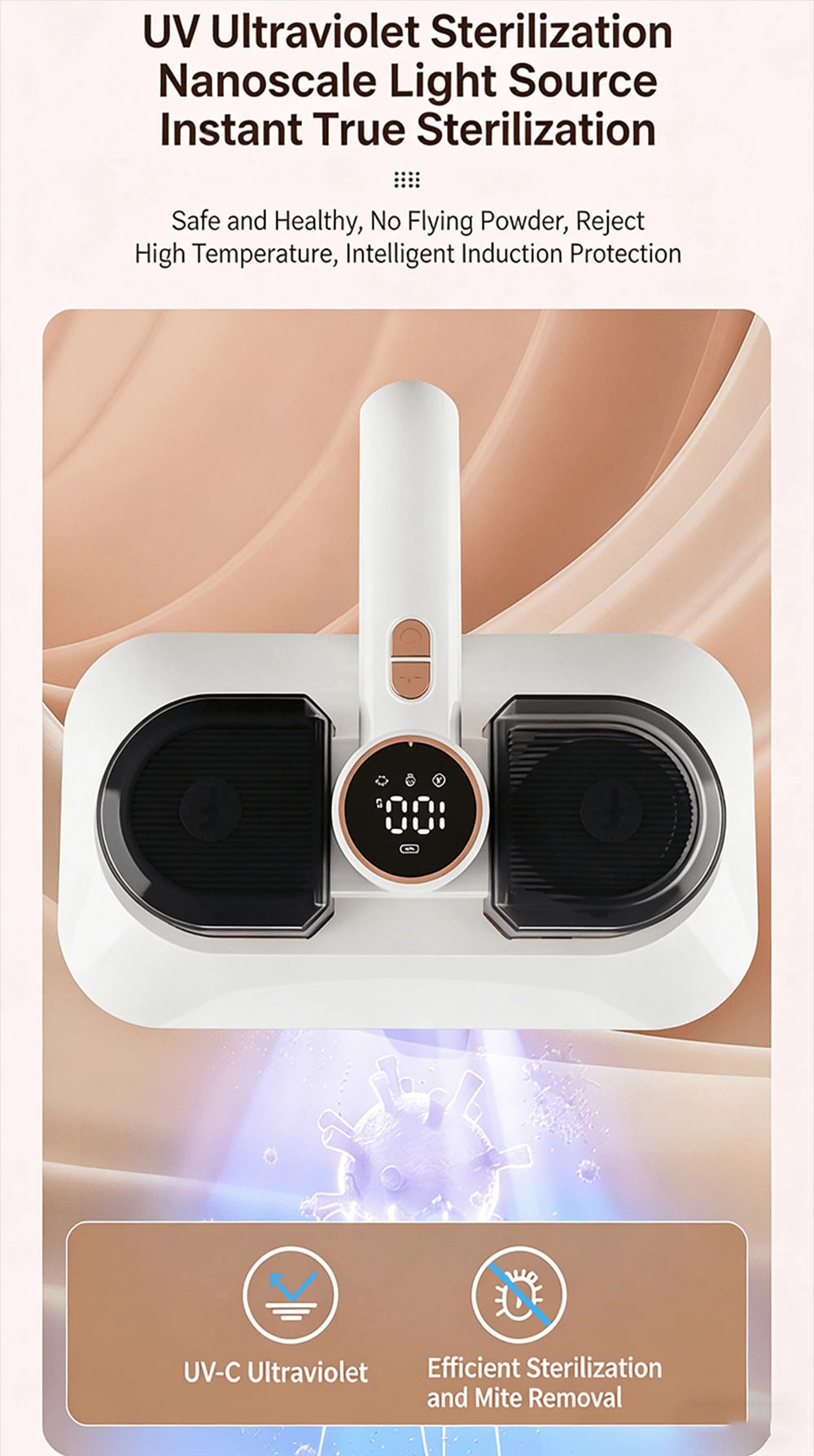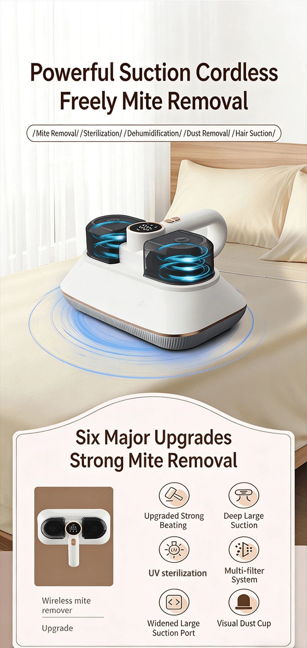 Wireless UV Mite Remover | Household Mattress Vacuum Cleaner | Dual-Cup High-Suction Mite Vacuum Cleaner